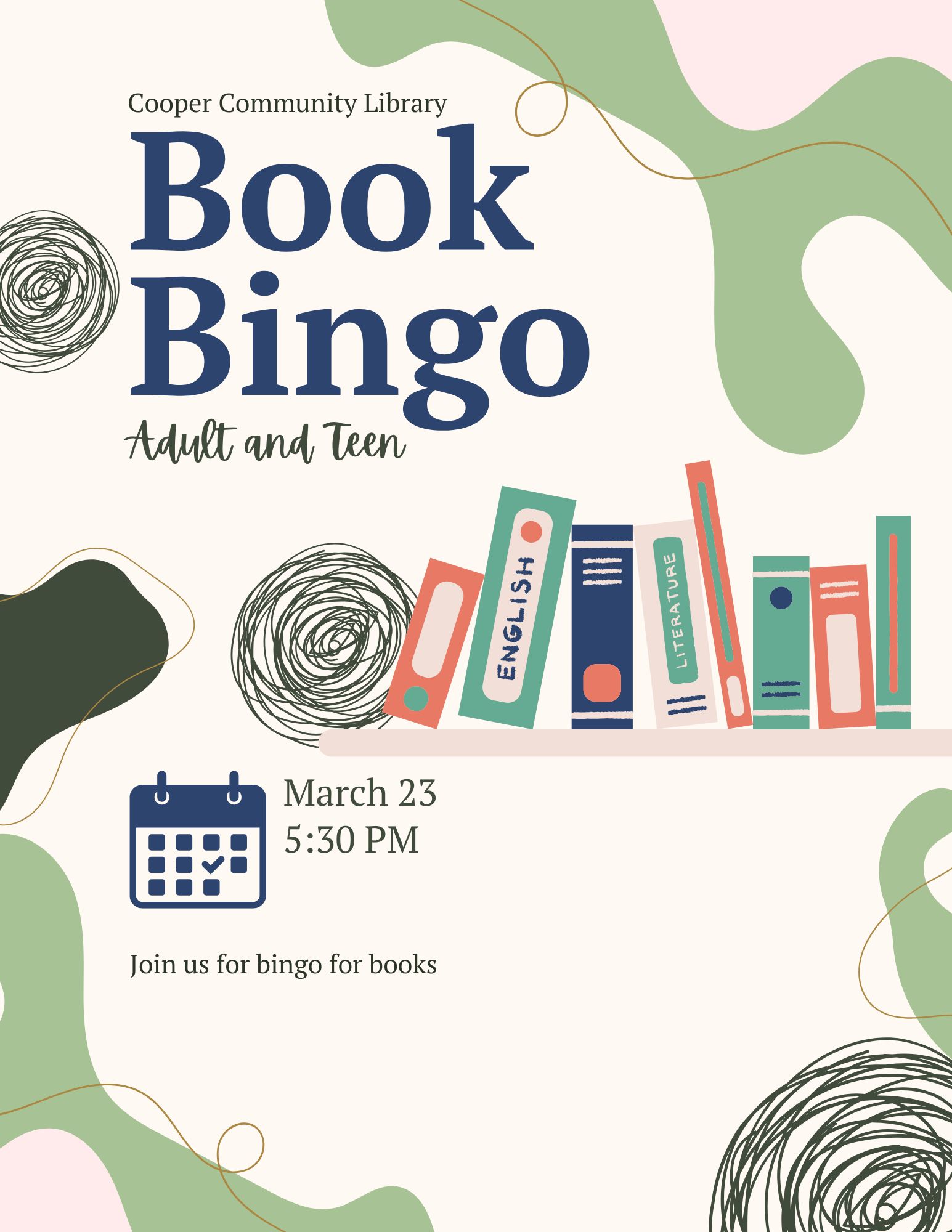 Cooper Community Library Adult Cookbook ClubStop in and check out our cookbook selection and join us with a new recipe. Make a new recipe with one of our cookbooks and bring it in the share and sample all the different treats this monthLocation: The Cooper Community Branch Library |